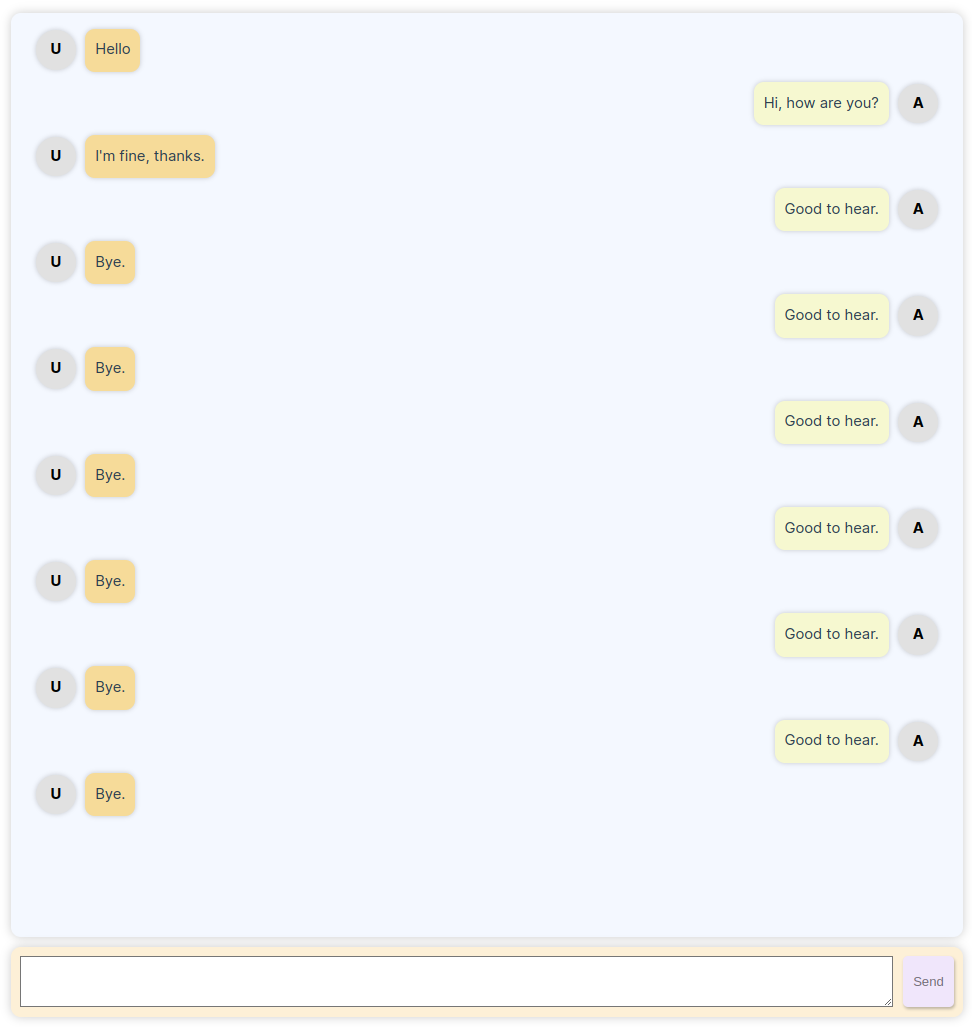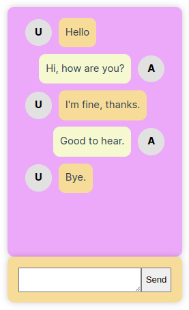The chatbot is starting to look a little more familiar now! We have a chat content area, and an input row with appropriate features. Hopefully your app looks something like this!