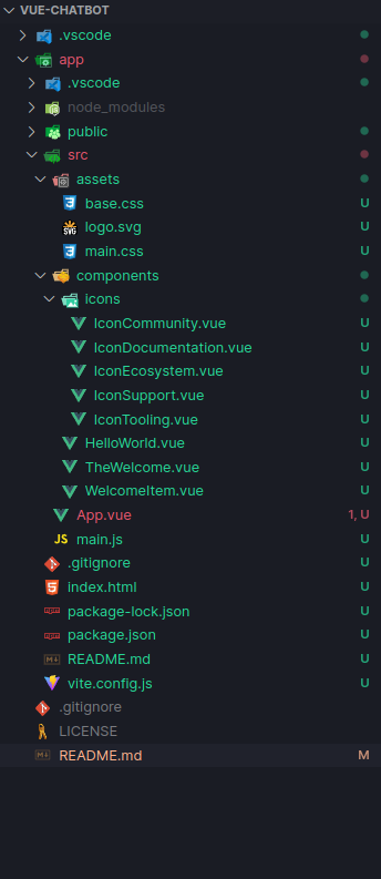 Notice we actually style the bubble as well and give it some personality depending on if the bubble is for the user or the bot. The message object stores key information such as the "role" of the message (user or assistant), and the content of the message. These are then displayed within the appropriate portions of the component and accessed through the double curly brackets (e.g., {% raw %}{{ message.content }}{% endraw %}). Now, let's update our ChatContent.vue component to pass the message prop to the ChatBubble.vue component. Here is the updated ChatContent.vue component.