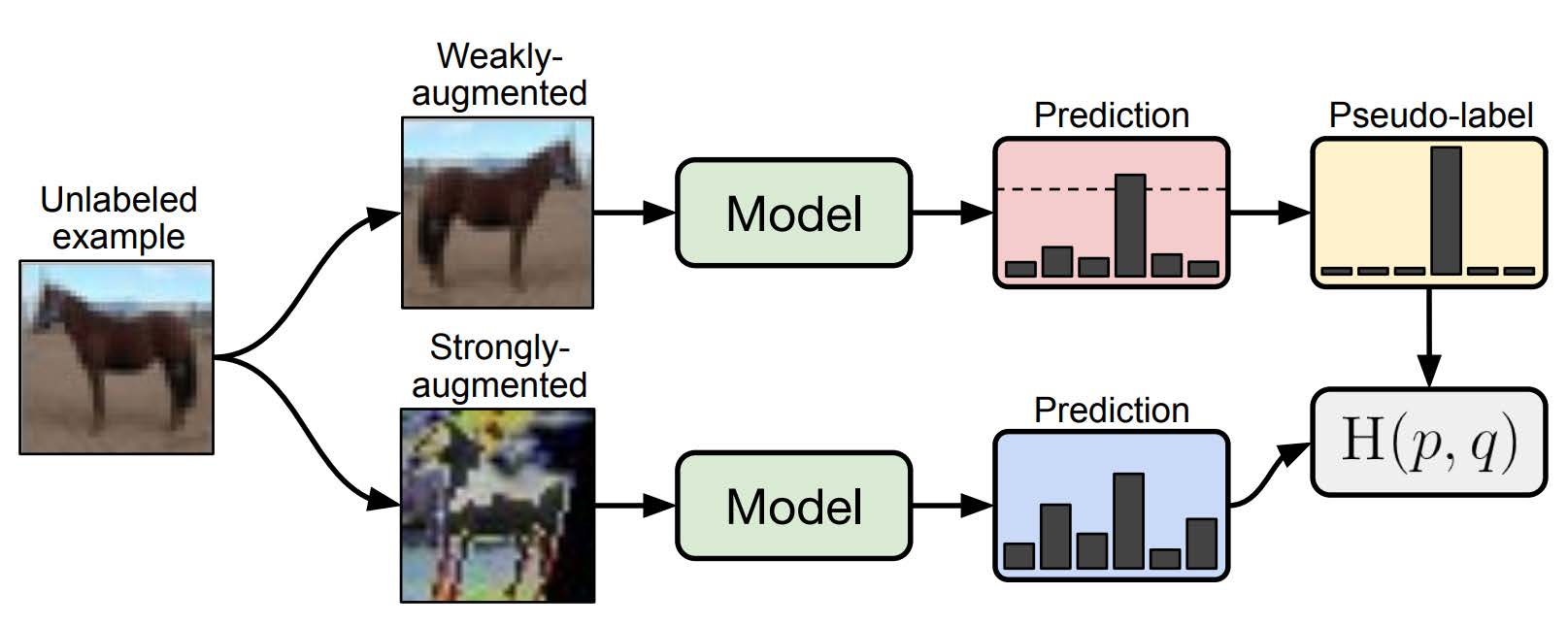 Our approach is aimed at improving upon the success of the winners of the Hateful Memes Challenge. To achieve this, we focused on expanding the dataset using semi-supervised learning techniques, specifically by adopting a similar architecture to the FixMatch algorithm introduced by Sohn et al. (Figure 1).